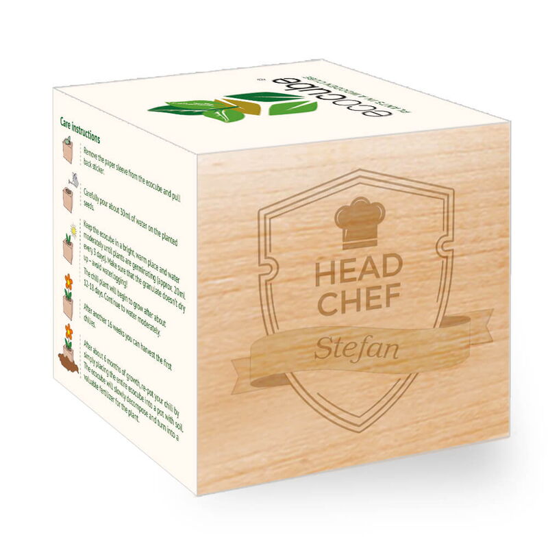- The left side of the plant cube will be engraved with your personalization and turns the ecocube into a special memento and an original gift.