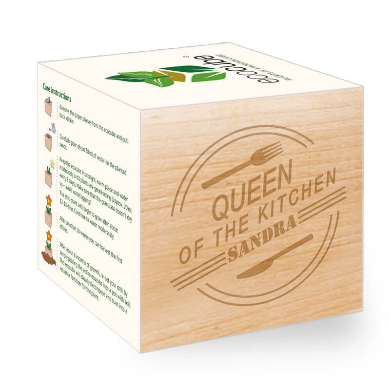 - The left side of the plant cube will be engraved with your personalization and turns the ecocube into a special memento and an original gift.