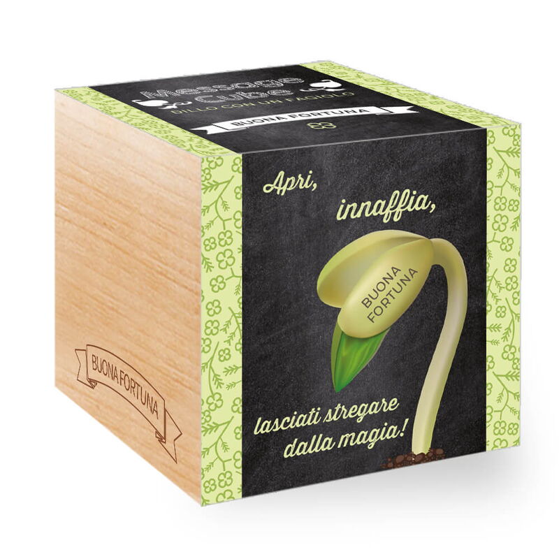 Caratteristiche: Il Message Cube contiene un fagiolo su cui è possibile incidere un saluto o un messaggio d'auguri.