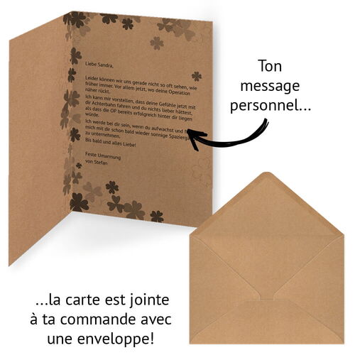 Remarque: la partie intérieure est imprimé avec ton message personnel, la carte est jointe à ta commande avec une enveloppe!