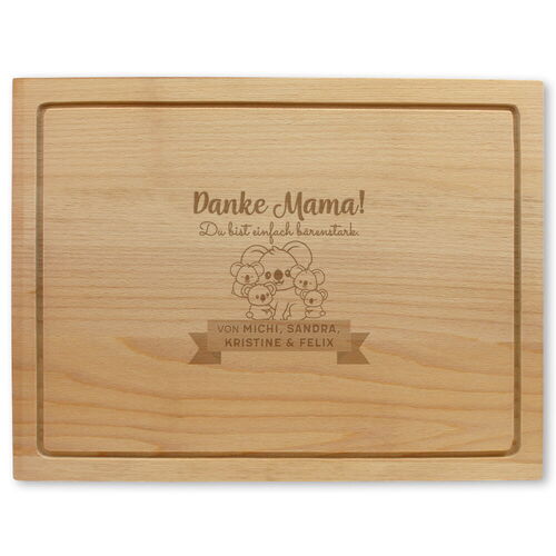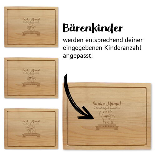 Stark. Stärker. Bärenstarke Mama. Personalisiere das Naturgeschenk für deinen Mamabär, indem die Anzahl ihrer Kinder und deren Vornamen eingibst. Die Bärenkinder werden entsprechend der Kinderanzahl angepasst. Beim Zubereiten und Servieren ihrer Köstlichkeiten, wird sie jederzeit daran erinnert, wie großartig sie ist!