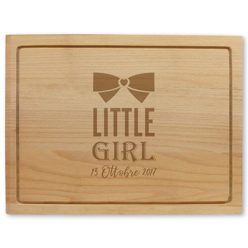 È una bimba! Stupisci i neo genitori con un tagliere in legno con dedica personalizzata. Un accessorio indispensabile per preparare deliziosi manicaretti che si trasforma anche in un elemento decorativo!