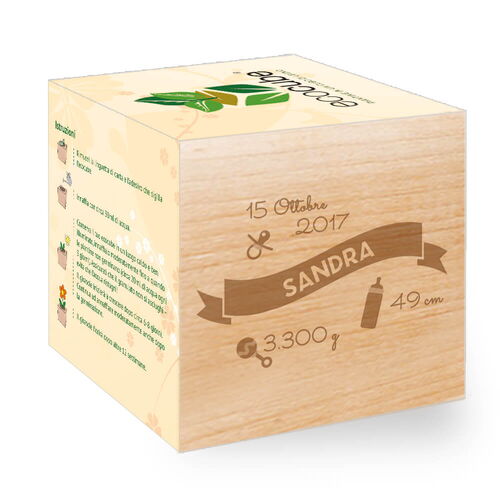 • Il lato sinistro del cubo è personalizzato con la tua personalizzazione e rende l'ecocubo un ricordo speciale e un regalo originale.