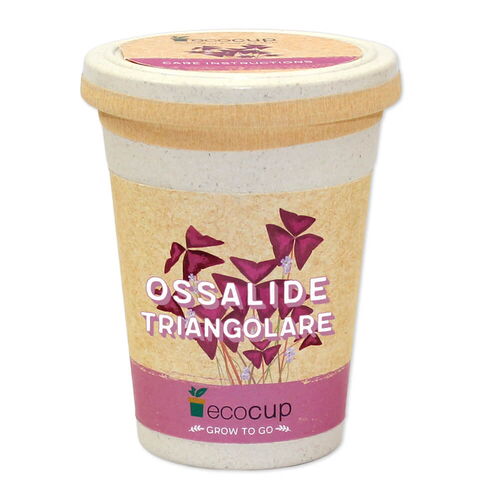 L'ecocup contiene granulato di fibra di cocco, granulato di argilla e i bulbi di ossalide triangolare.