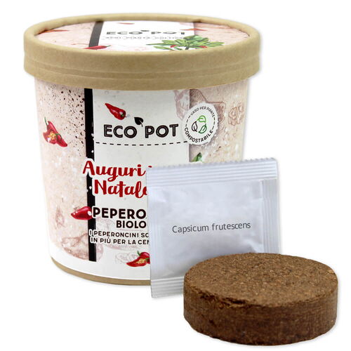 ecopot contiene set composto da vaso per piante compostabile, compresse in fibra di cocco e sacchettino con i semi.