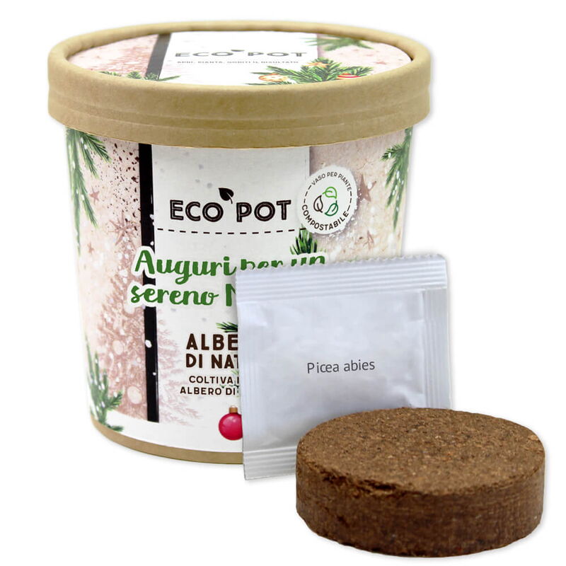 ecopot contiene set composto da vaso per piante compostabile, compresse in fibra di cocco e sacchettino con i semi