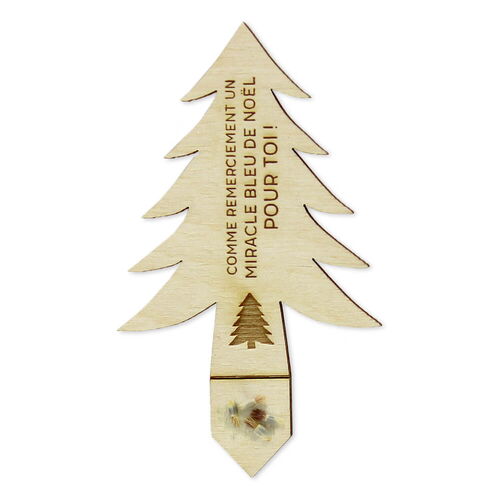 L'ecoxmas contient un marqueur de plantes en forme de sapin de Noël, de la colle écologique et des semences de plantes.