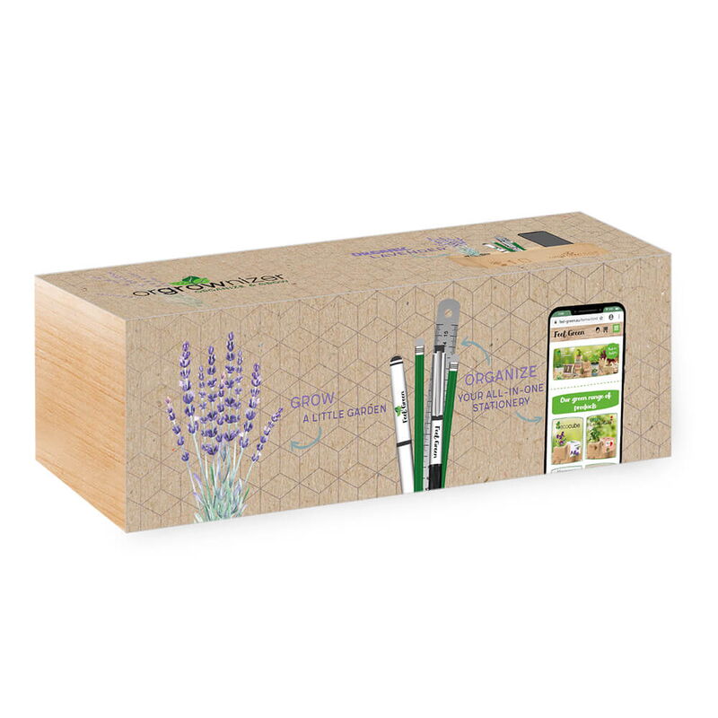 • The lavender will bloom after another 12 weeks and soon after the first leaves can be harvested continuously. The orgrownizer will turn into a decorative and useful stationery.