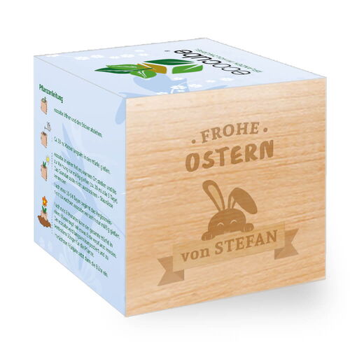 • Die linke Seite des Pflanzwürfel wird mit deiner Personalisierung graviert und macht den ecocube zu einem besonderen Andenken und originellem Geschenk.