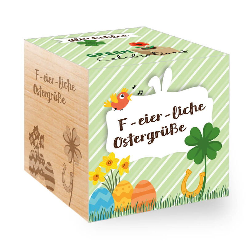 Green Celebrations enthält Kokosfasergranulat, Tongranulat, kompostierbaren Anzuchttopf und Blumenzwiebel.