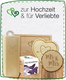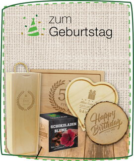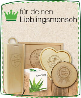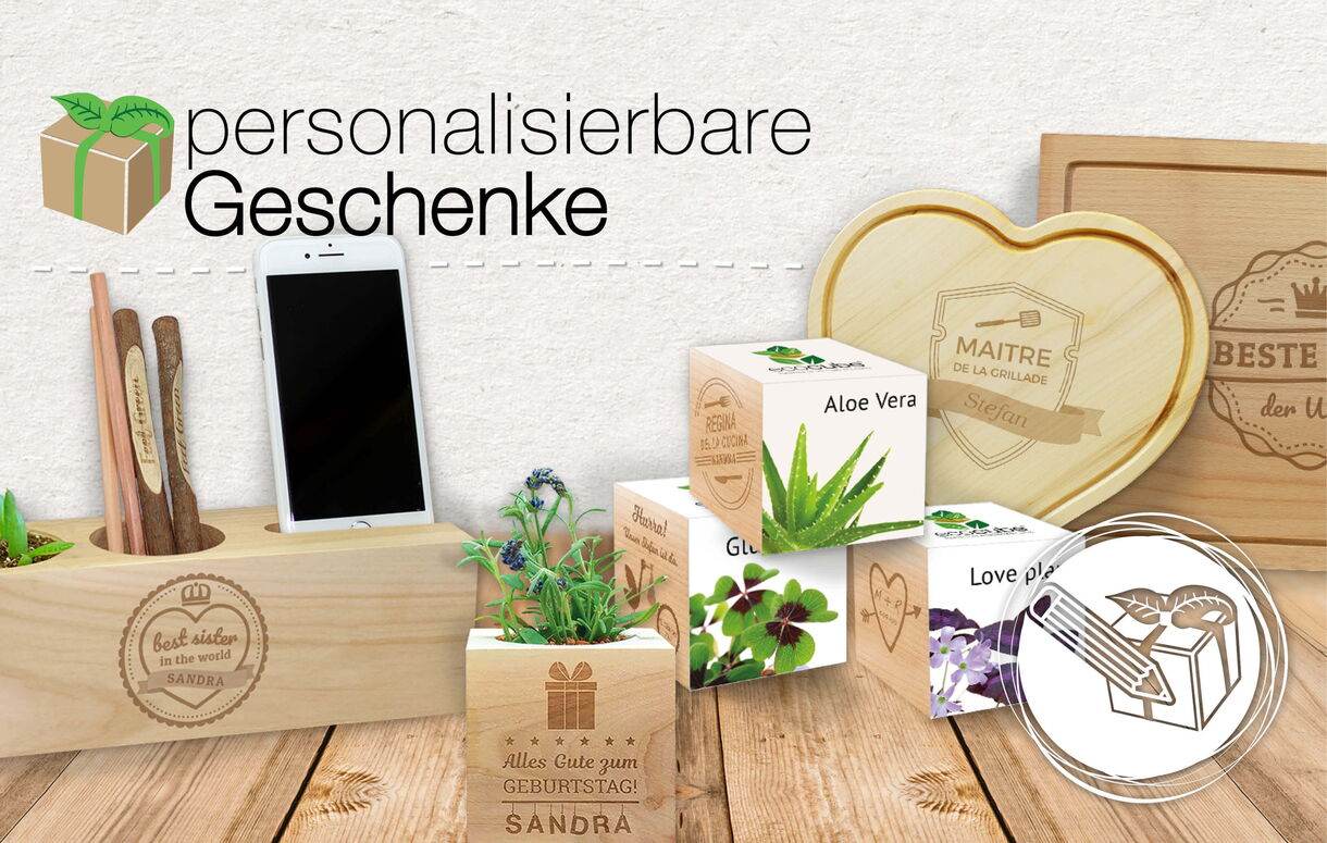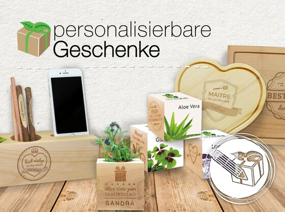 Kreiere im Handumdrehen ein passendes Naturgeschenk für den nächsten bevorstehenden Anlass. Wähle dabei zwischen unseren dekorativen Rindenscheiben, nützlichen Schneidebretter, Anzuchtsets im Holzwürfel, persönlichen Weinboxen oder personalisierbaren Glückwunschkarten. Entscheide dich für eine Gravur und verleihe dieser mit wenigen Eingaben einen persönlichen Touch.