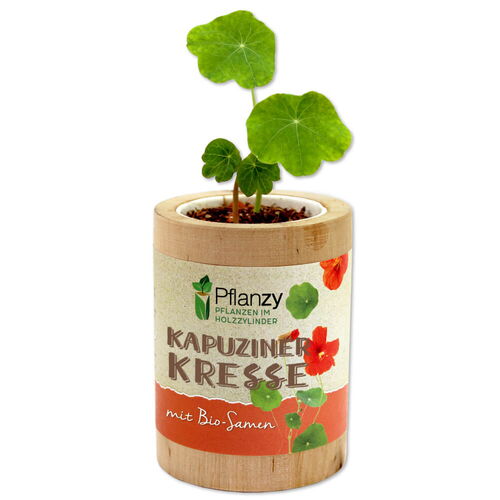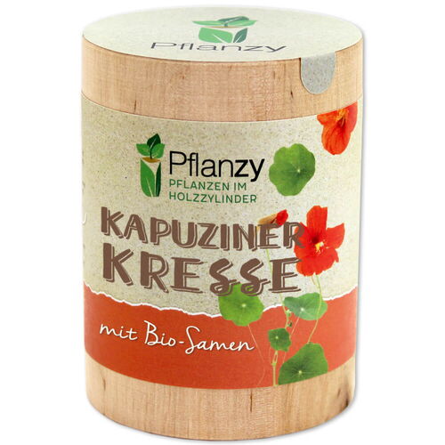 • Sobald die Pflanze zu groß für die Pflanzdose wird, vorsichtig mit dem kompostierbaren Bechereinsatz herausnehmen und in einen Blumentopf mit etwas Erde oder ins Freie verpflanzen. Der Holzzylinder kann z.B. als Stiftehalter weiterverwendet werden!