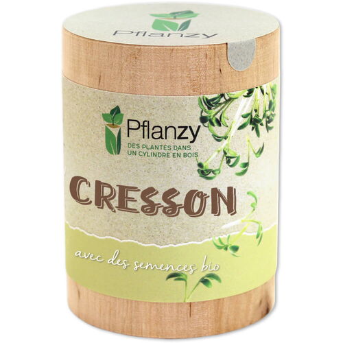 Pflanzy contient granulés de fibres de noix de coco, granulés d'argile, un gobelet de culture biodégradable et semences de plantes.