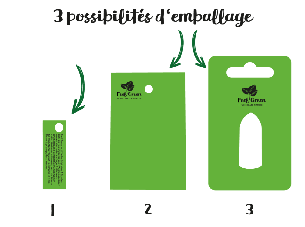 La petite serre portable peut être personnalisée avec votre slogan ou votre logo à l'aide de l'impression au tampon. De plus vous pouvez choisir entre différents types d'emballage qui peuvent également être personnalisés.