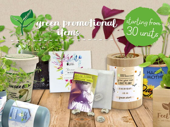 From just 30 pieces per design or per plant variety, our green promotional items can be personalized and carry a sustainable (advertising) message. We offer our products with various personalization options that can be mixed and matched.