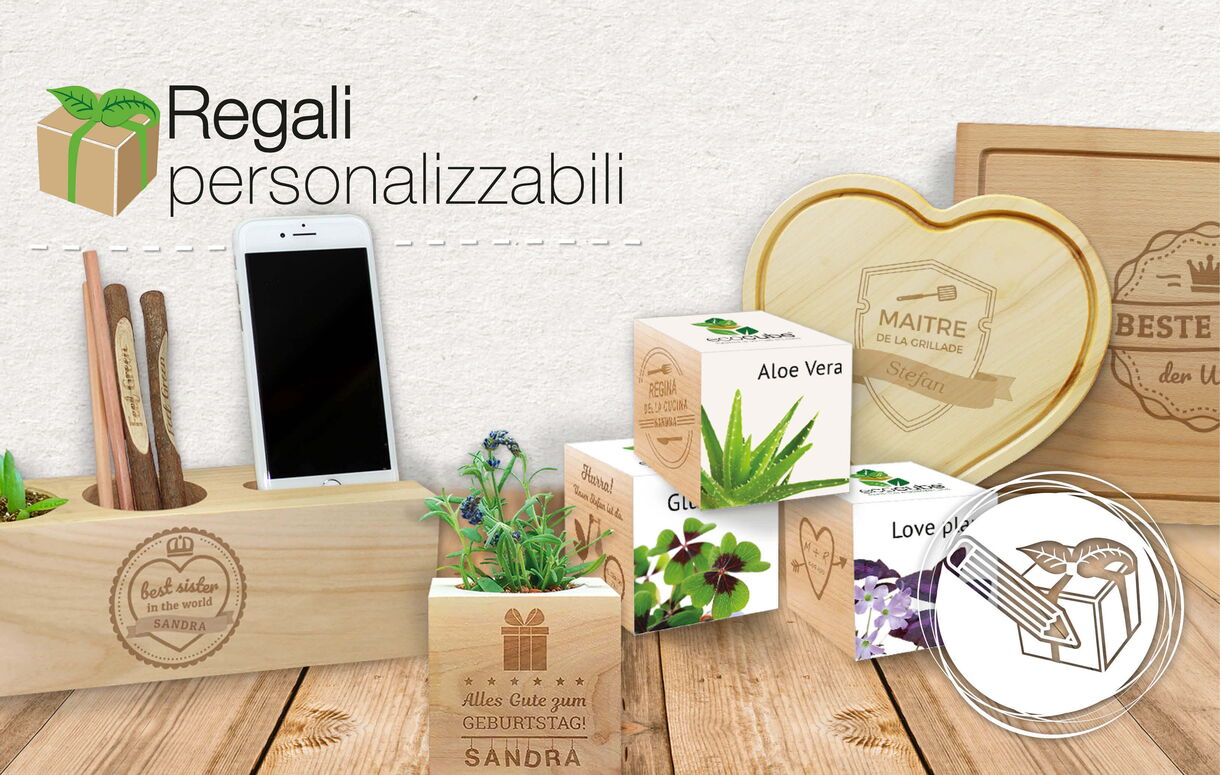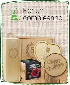 Crea un originale regalo sostenibile e naturale per gli eventi più importanti! Scegli tra i dischi decorativi in corteccia, i taglieri, i grow kit, i cubi di legno o le wine box. Pensa ad una frase da incidere e rendi unico ogni singolo pezzo in pochi semplici passaggi.
