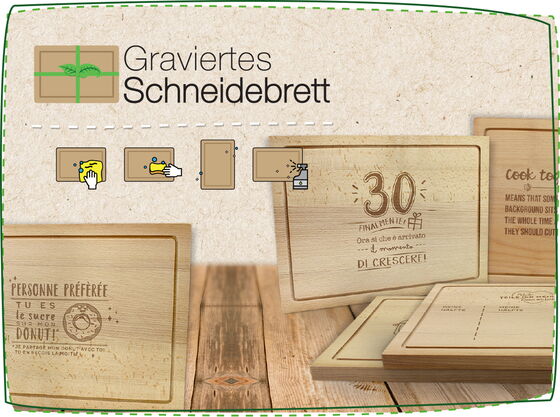 Schneidebretter aus Buchholz sind praktische und dekorative Geschenkideen mit den unterschiedlichsten Einsatzmöglichkeiten! Unsere liebevoll designten Gravuren werden mittels Laser in die Schneidebretter eingraviert und sind bis ins kleinste Detail deutlich erkennbar. Die Besonderheit an dem Geschenk liegt in seiner Einzigartigkeit, da es sich hierbei um ein Naturprodukt handelt. Holzmaserungen, Gravuren, Farben, etc. können von Produkt zu Produkt abweichen – aber dieses besondere Feature macht ja ein originelles Geschenk aus!