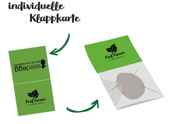In der Tüte hat ein seedegg Platz, diese wird mit einer individuellen Klappkarte verschlossen. Hier können die Vorder- und Rückseite individuell gestaltet werden