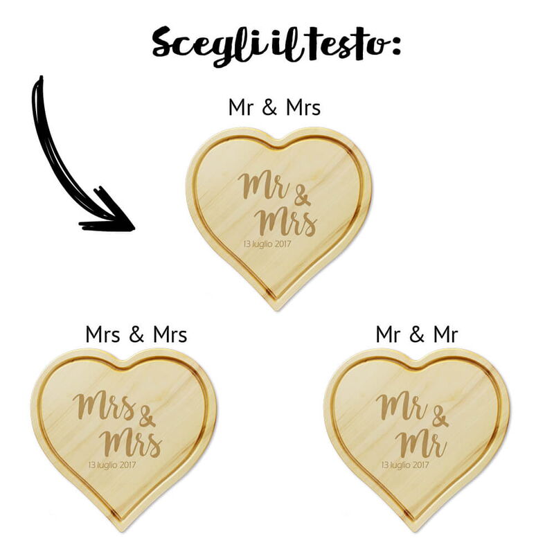 Evviva gli sposi Un tagliere di legno è un'idea regalo unica e particolare per un matrimonio, per il giorno di San Valentino, per un anniversario importante ed è perfetto per servire ogni tipo di manicaretto: d'altronde, l'amore passa anche per le papille gustative! Un regalo di nozze unico e pensato, che terrà sempre vivo il ricordo di questa bellissima giornata e di ogni singolo momento di felicità.