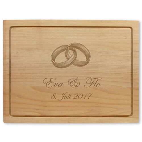 Läuten demnächst die Hochzeitsglocken? Unser Holzschneidebrett ist die herzliche und persönliche Hochzeitsgeschenkidee und eignet sich zum gemeinsamen Zubereiten und Servieren von Speisen. Als kleines Andenken erinnert es das Brautpaar jederzeit an den schönen Tag und die vielen kleinen Glücksmomente zurück.