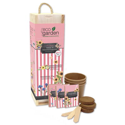 Merkmale: Mit der Blumenwiese holst du dir Frühjahrs- und Sommerfeeling ins eigene Zuhause oder Büro. Zudem wird die bunte Blumenwiese in der Holzkiste zu einem kleinen, nahrhaften Paradies für Bienen, Schmetterlinge und viele andere nützliche Insekten. Unsere Blumenmischung enthält eine bunte Mischung an bienenfreundlichen Blumen. Einige davon produzieren Nektar, andere sind Honigblüten. Es gibt also immer einen Snack für die Bienen.