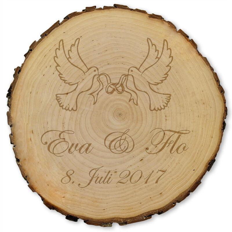 Läuten demnächst die Hochzeitsglocken? Unsere Rindenscheibe ist die herzliche und persönliche Hochzeitsgeschenkidee und eignet sich hervorragend als liebevolle Dekoration mit persönlichen Touch – eben ein ganz besonderes Andenken.
