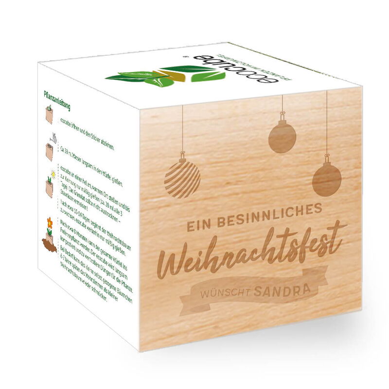 Ein besinnliches Weihnachtsfest kann man auch nachhaltig und persönlich wünschen! Der persönliche ecocube wird mit nur wenigen Eingaben zum persönlichen Weihnachtsgruß und -geschenk.
