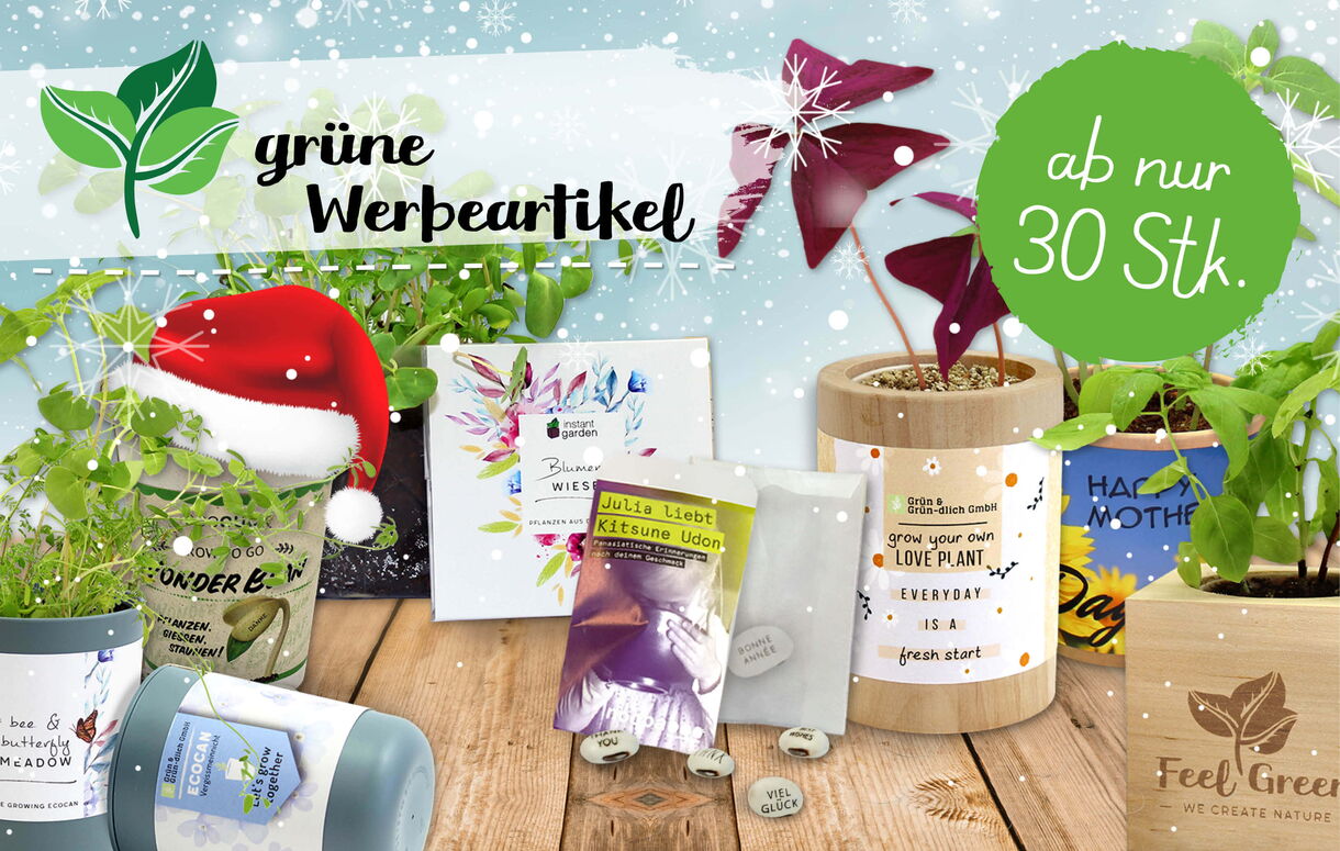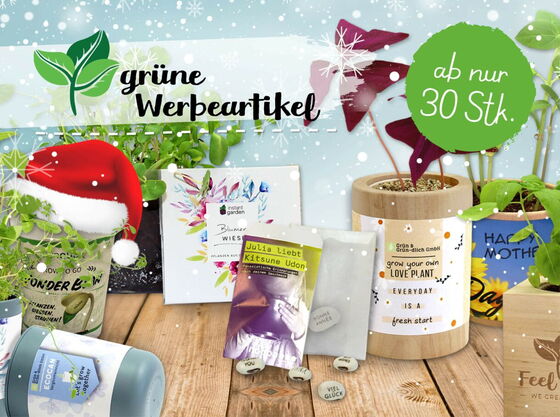 Ab nur 30 Stk. pro Design bzw. pro Pflanzensorte können unsere grünen Werbeartikel personalisiert werden und so zum Träger einer nachhaltigen (Werbe-)Botschaft werden.