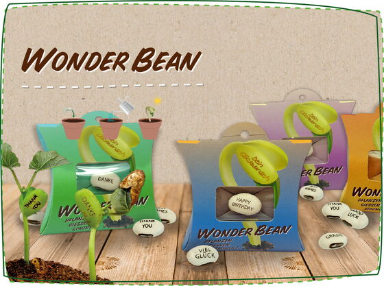 It’s the little things that grow lasting friendships! Our Wonder Beans are the ideal token gift or little present, which in spite of, or maybe because of their size, show great attention to detail as every bean sprouts a unique greeting as it grows. We have the right bean for almost every occasion! In contrast to our other products, which come "Ready to grow", recipients can here plant, grow and care for their own Wonder Bean. And they are met with a unique greeting in return!
