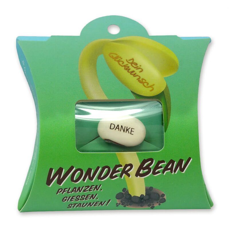 Merkmale: Wonder Bean enthält eine sogenannte Jackbean oder Riesenbohne in die eine Gruß- bzw. Glücksbotschaft eingraviert wurde.