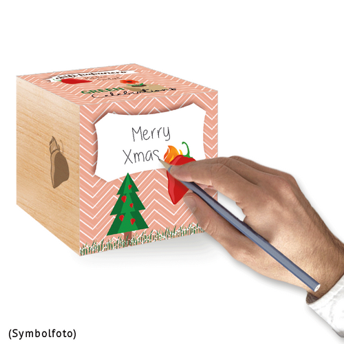 • Sobald die Pflanze zu groß für den ecocube wird, vorsichtig mit dem kompostierbaren Bechereinsatz herausnehmen und in einen Blumentopf mit etwas Erde oder ins Freie verpflanzen. Der Würfel kann auch als Stiftehalter weiterverwendet werden!