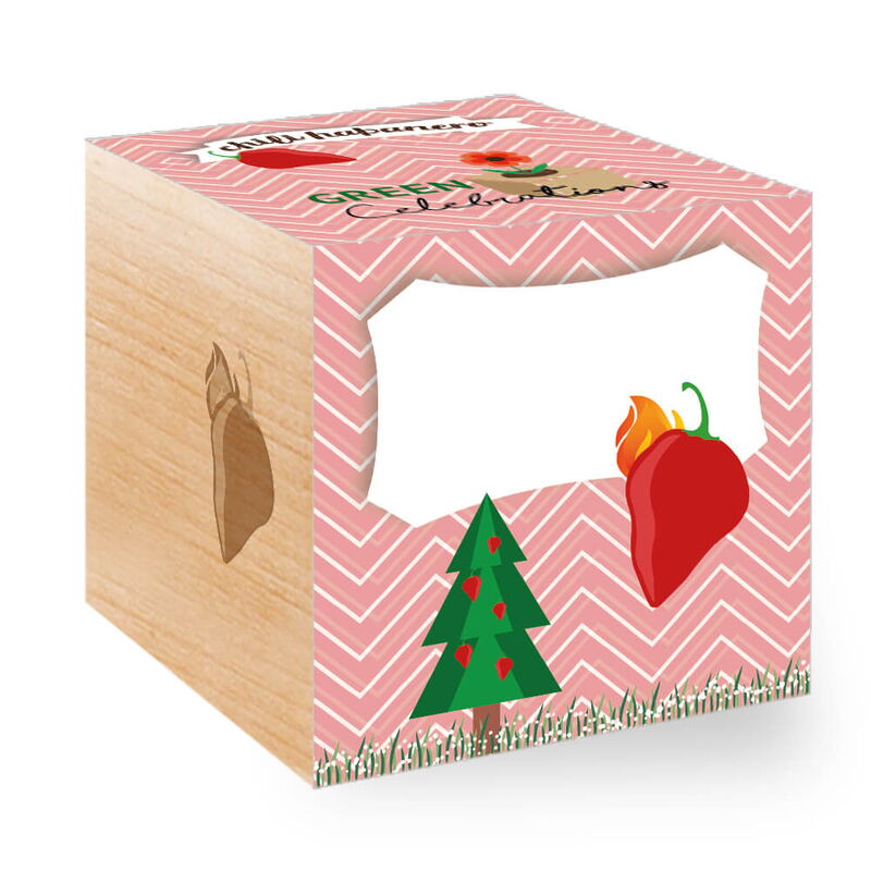 Green Celebrations enthält Kokosfasergranulat, Tongranulat, kompostierbaren Anzuchttopf und Pflanzensamen.