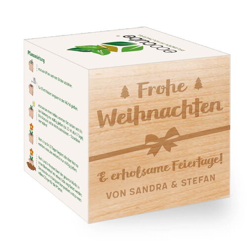 Frohe Weihnachten & erholsame Feiertage! Wir "verpacken" Weihnachtsbotschaften nachhaltig, wer braucht schon Geschenkpapier?! Dieser personalisierbare ecocube ist Weihnachtsgruß und -geschenk in einem und erhält in wenigen Schritten einen persönlichen Touch.