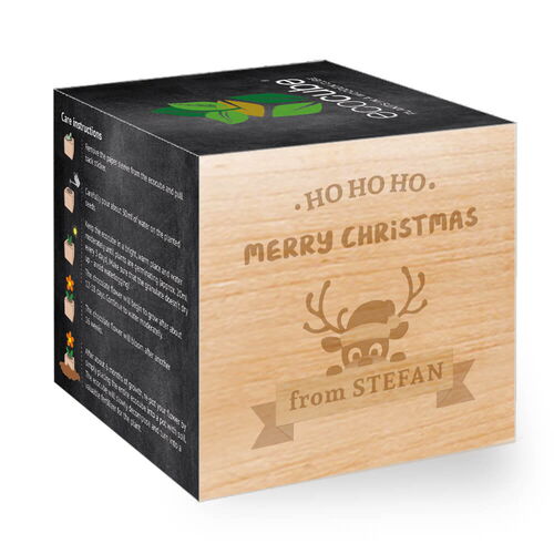 Our reindeer Rudolf brings growing Christmas greetings to your loved ones with his shiny nose! Simply select the plant seeds and type in the sender. The customizable ecocube is ideal as a Christmas greeting, a Christmas gift or an elf gift for all your loved ones. The plant cube is personalized with just a few entries.